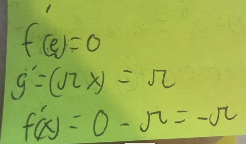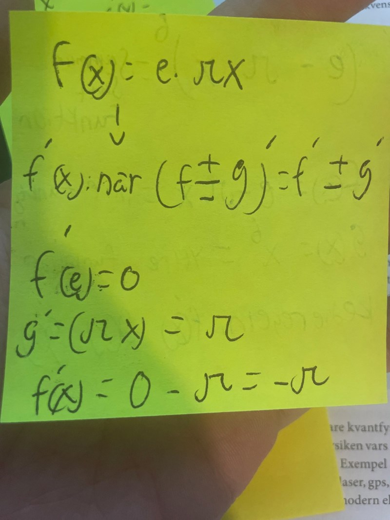 Och på raden under skriver du att g' = (x) = , vad netyder det ens?