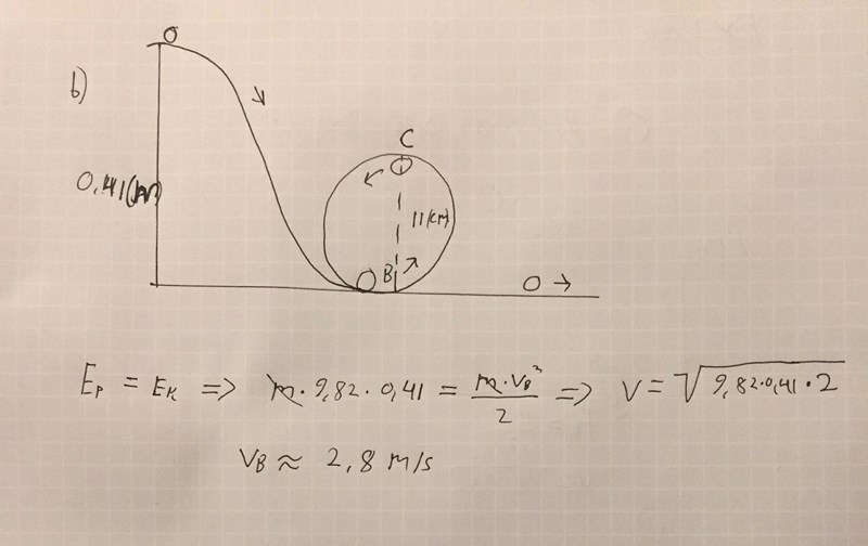 Hastigheten vid punkt B Kan jag räkna ut men inte C, några tips på hur jag ska göra?