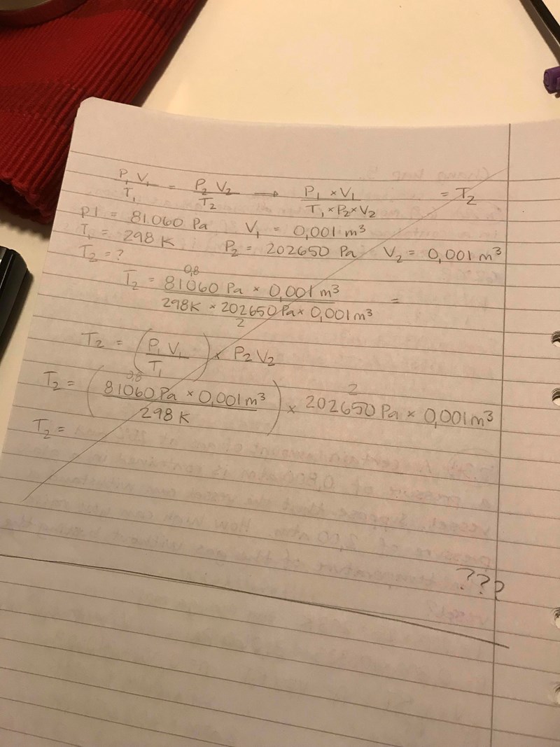 En viss mängd gas vid 25 grader och ett tryck på 0,8 atm finns i en glasflaska. Antag att flaskan kan motstå 2 atm. Hur mycket kan du höja temperaturen utan att flaskan går sönder?
