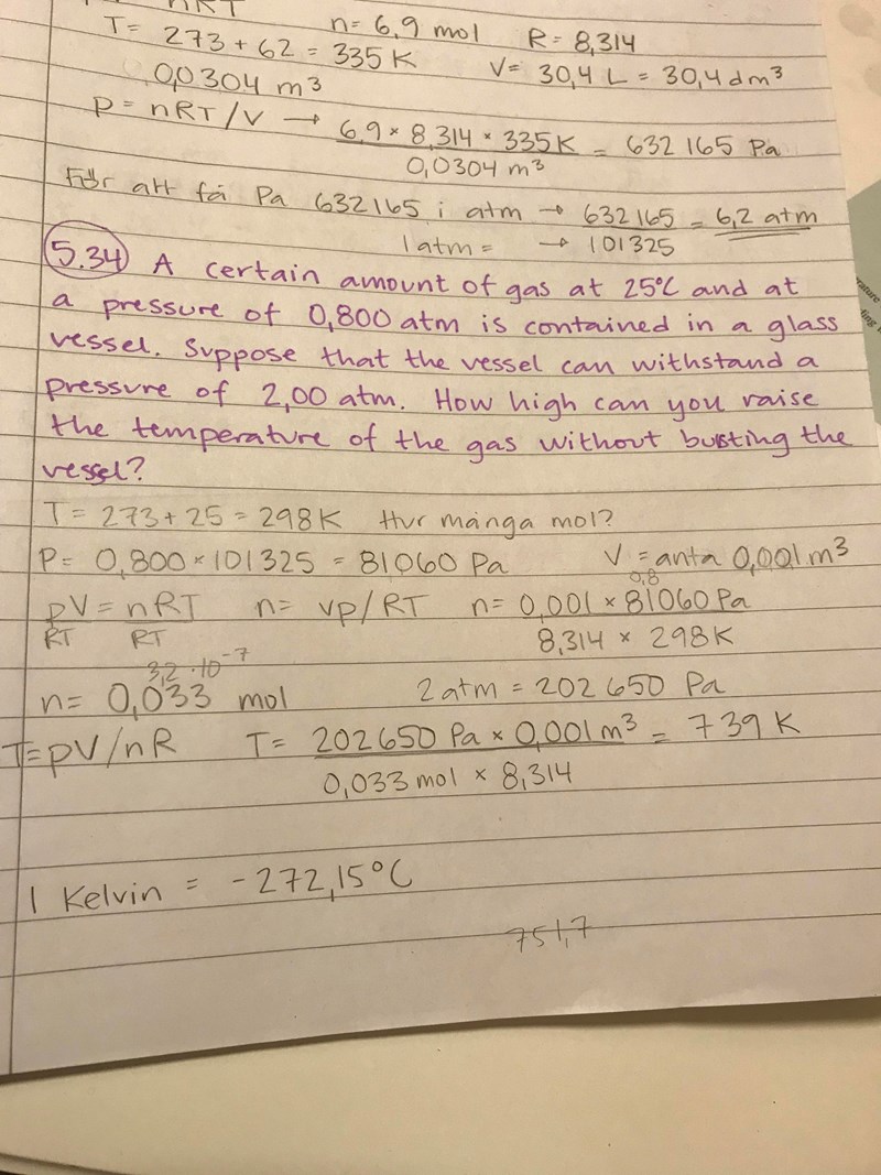 Dessutom undrar jag när jag ska räkna med atm och när jag ska räkna med pascal? På föreläsningen gick läraren genom att tryck (p) alltid är i enheten pascal men i boken verkar de hela tiden räkna med atm....??