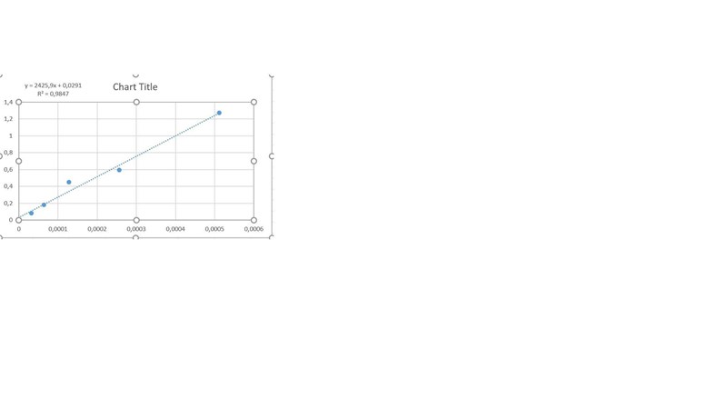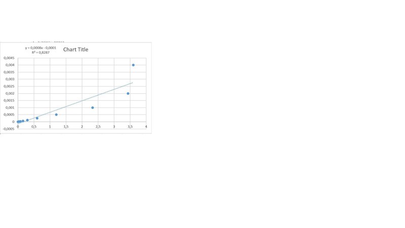 Jag bifogar kalibreringskurvan här. Y-axeln är absorbtion och X-axeln är koncentration.