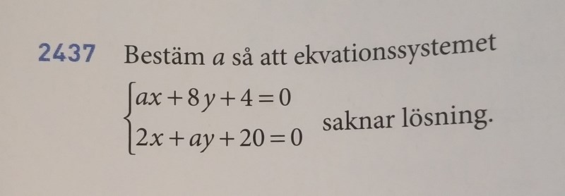 Solberga skrev :Tack för snabbt svar, kan jag dela den ena ekvationen med a och den andra med 8?