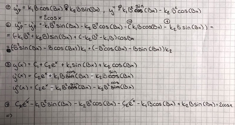 men jag vet inte hur jag ska gå vidare efter det. Jag tror att B=1 eftersom det är cos(1*x) i ekvationen men det är jag inte säker på. Jag har heller ingen aning hur jag ska få fram k1 och k2