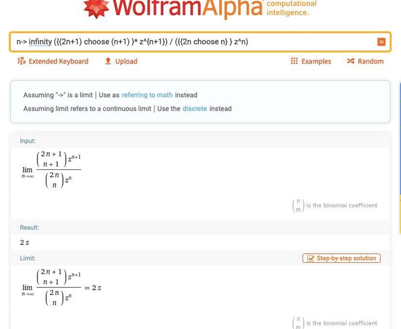 Tomten skrev:Jag förmodar att du försöker summera serien genom att utnyttja exemplet från någon skrift som du citerar. Exemplet är dock en funktionsföljd och inte en serie. Det är inte nödvändigt att summera serien. Det räcker med att bestämma konvergensradien för den givna POTENSSERIEN. Utnyttja följande sats: Konvergensradien R till potensserien Summa( an zn ) ges av 1/R = limsup(Abs(an )1/n då n går mot oändligheten. (Ber om överseende för min dators begränsade förmåga att skriva matematiska tecken) Du behöver någon bra uppskattning på dina binomialuttryck.