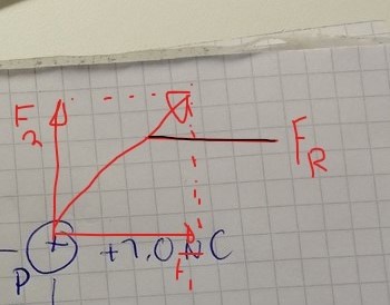 Så, nu har du F1 och F2 som påverkar P. Rita en ny figur med bara P och de 2 krafterna inritade. Vilken storlek och riktning får resultanten?