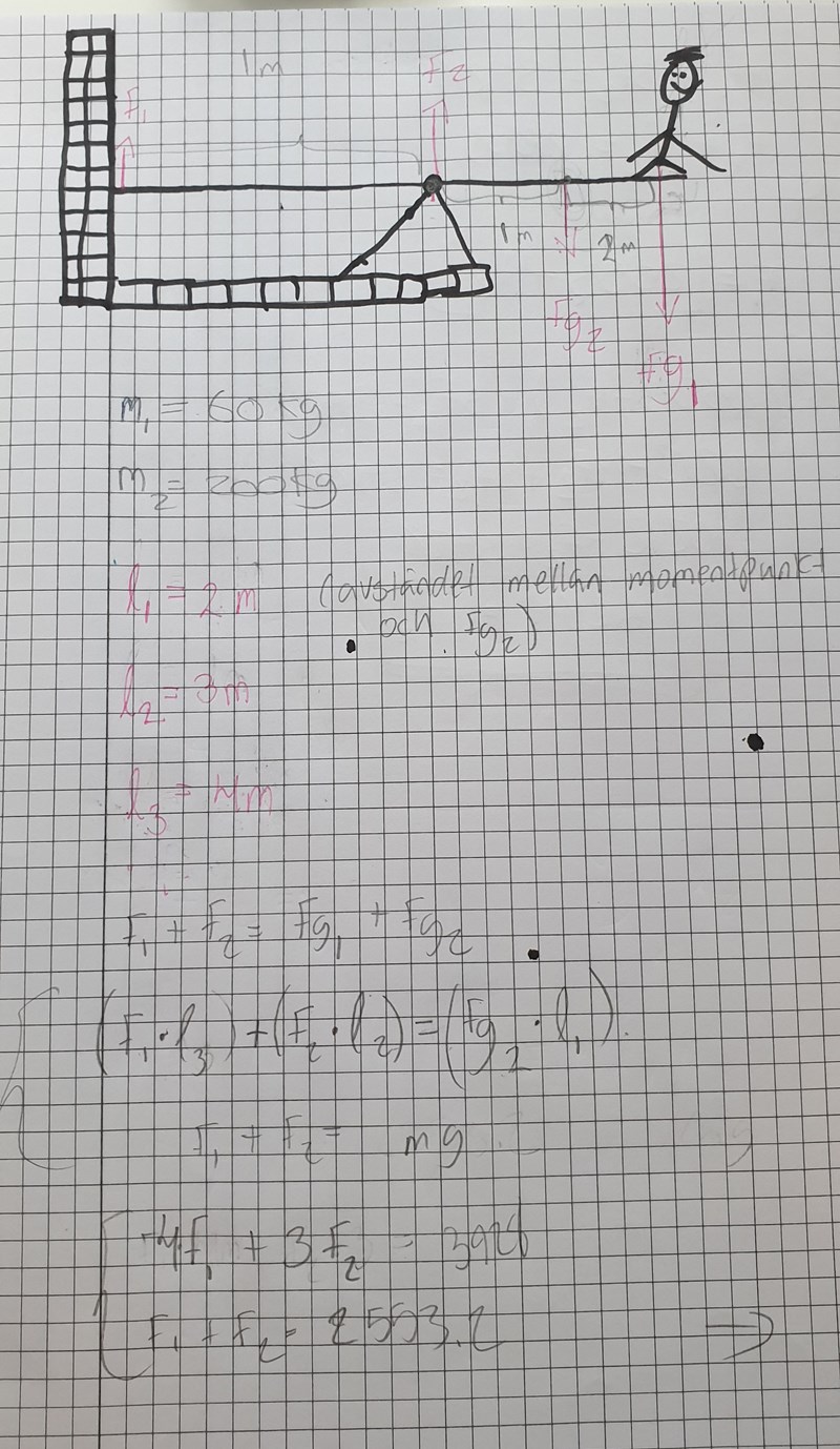Kraftmoment för F1 + kraftmoment för F2= kraftmoment för Fg1 +kraftmoment för Fg2?