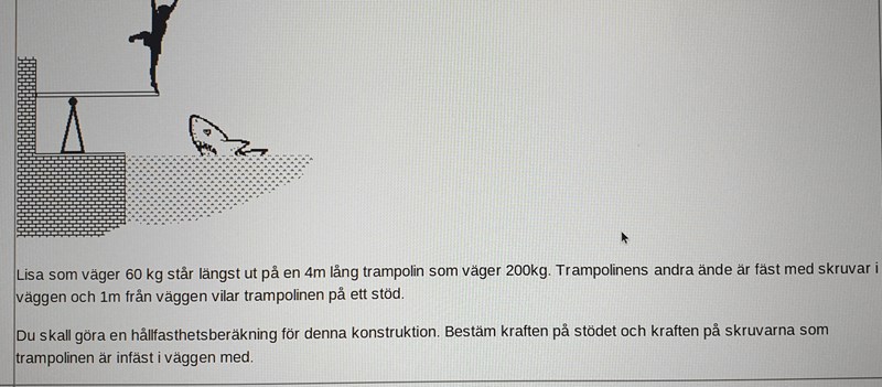 Min fråga är var jag ska sätta ut kraften för trampolinen. Den väger 200 kg och tyngdkrafter drar neråt.