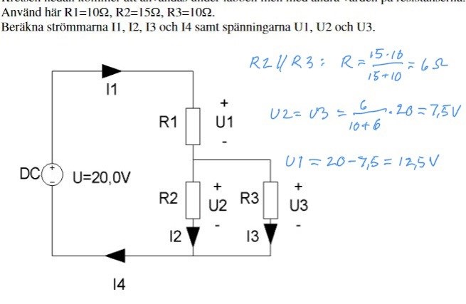 Man kan också räkna ut och sedan beräkna och med strömdelning.