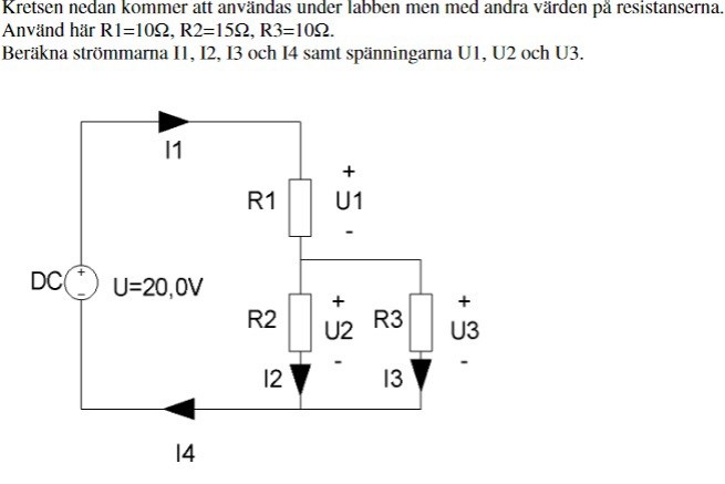 Tack för svar! Sen är det väl bara att ta Ohms lag för räkna ut strömmarna? Sen stämmer det väl att I1=I4?