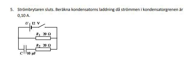 Räkna ut laddning på kondensator i krets