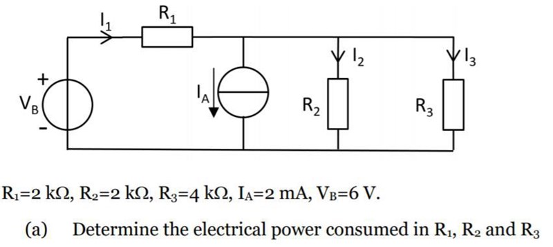 Då löser du I23 i ovanstående samt att V23=I23*R23Då bör du ha allt för att beräkna effekterna :-)