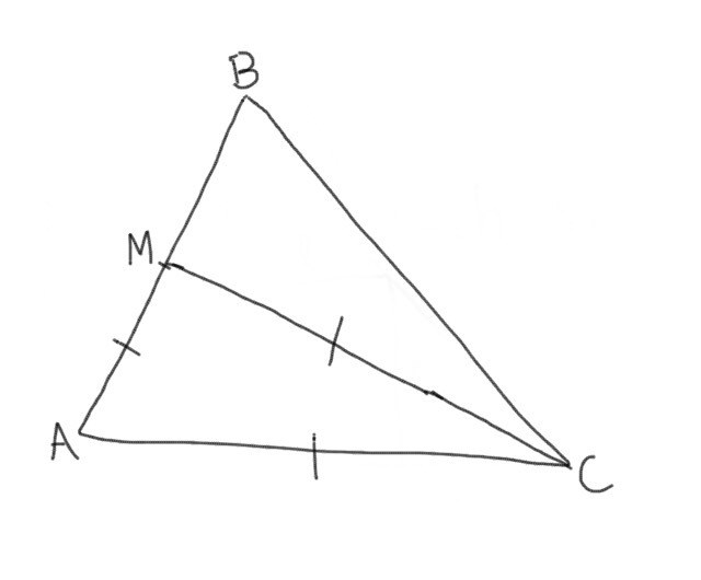 Punkten M är mittpunkt på sidan AB i triangeln ABC. Beräkna triangeln ABC:s omkrets, givet att triangeln AMC är liksidig och att |AB| = 12l.e.