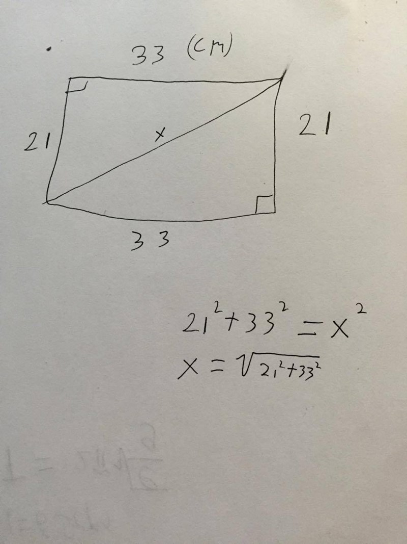 A diagonalen på den, bara o rita och mäta diagonalen? ( 33 cm dem långa sidorna och 21 kortsidorna)