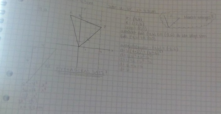 Med vilka tal ska jag ha med i pythagoras sats? Jag testade att rita en rätvinklig triangel från x=4 linjen (någonstans där punkt P är) till linjen där x=0 och sen till y=6, så att det blev 6^2+ 4^2= 7.2, men det blev fel