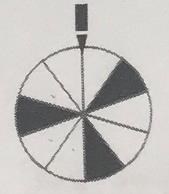 FRÅGA: Du snurrar hjulet två ggr. Hur stor är sannolikheten att det stannar på olika färg?