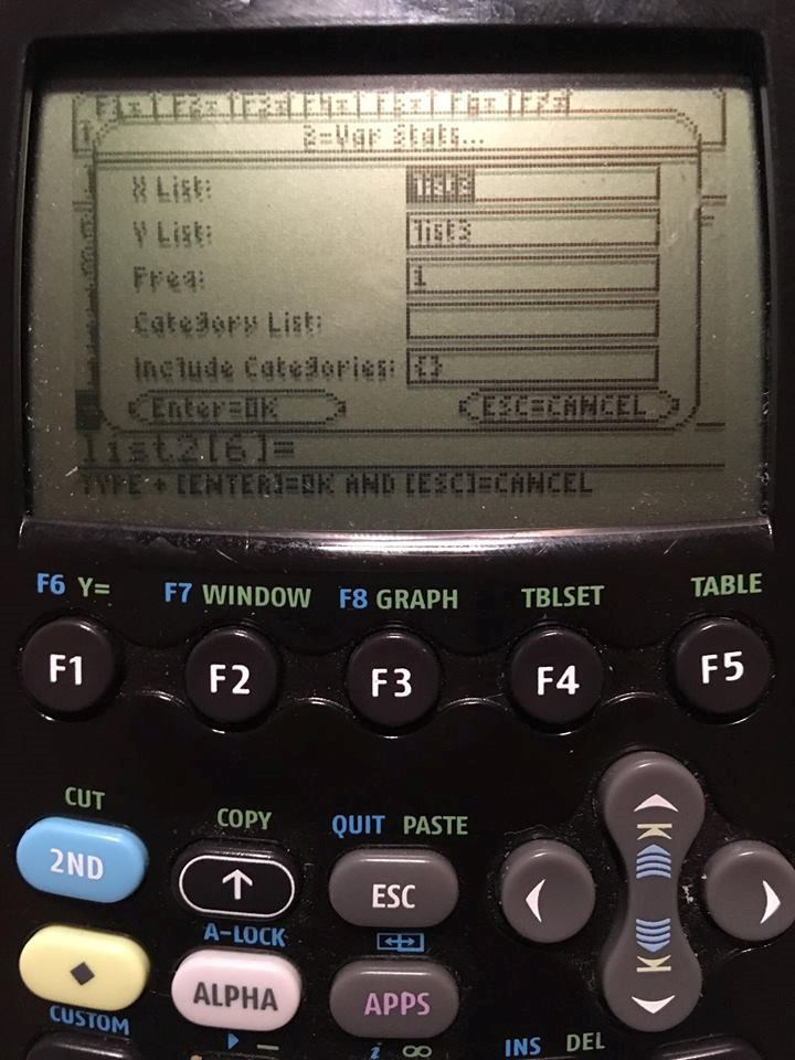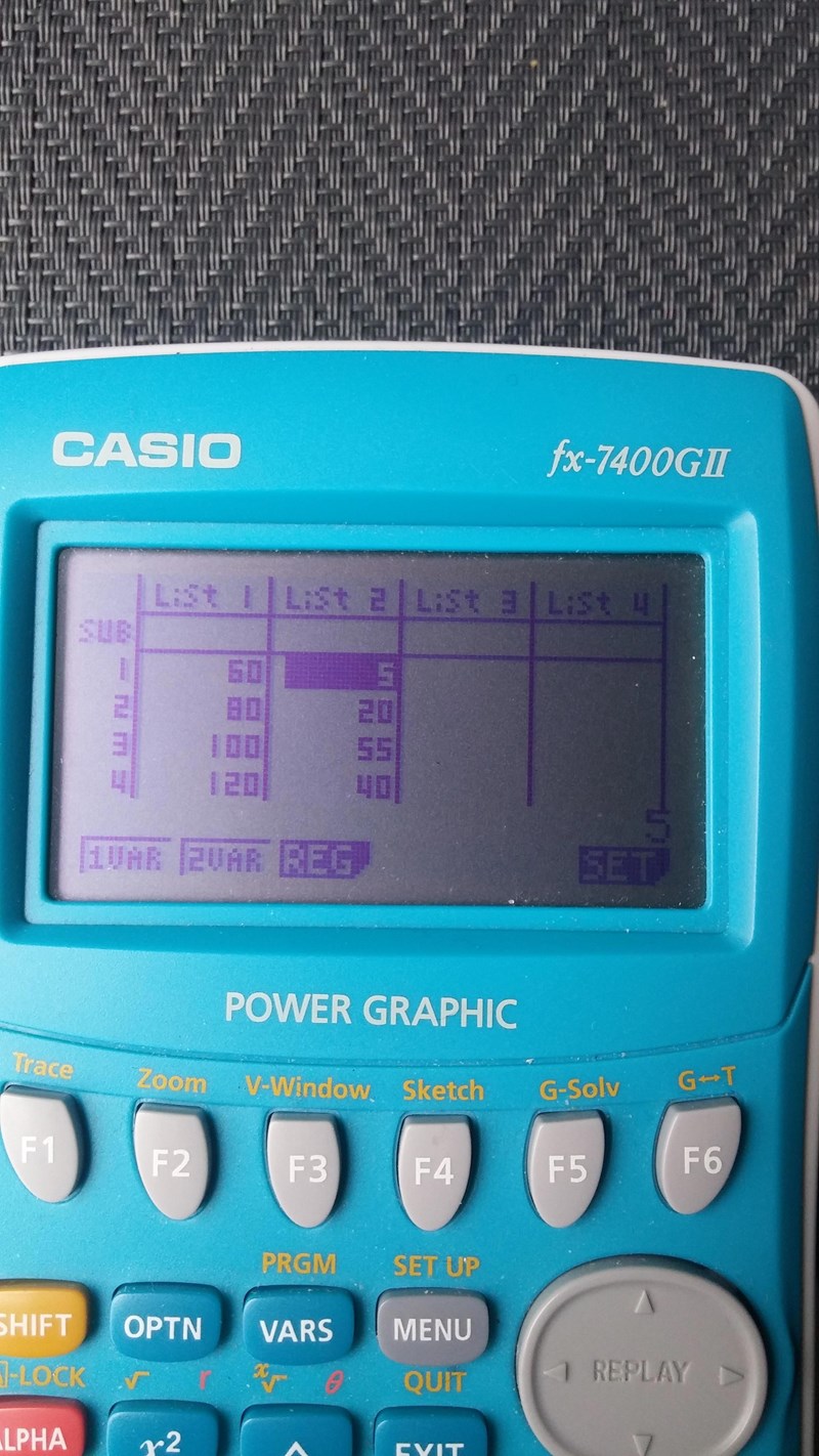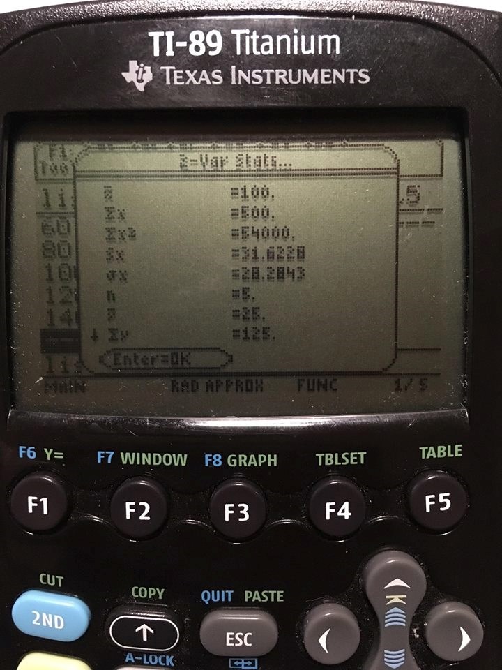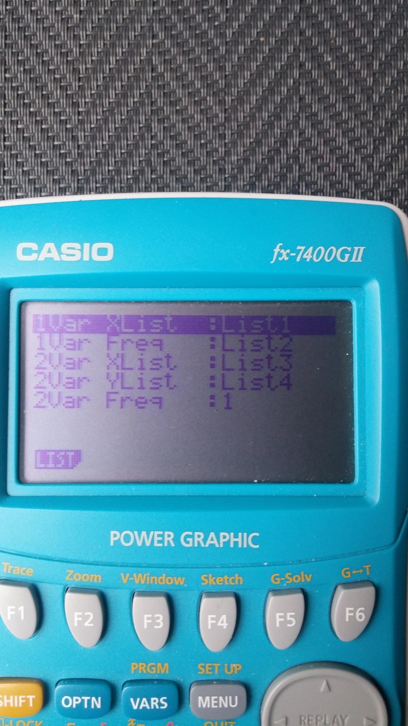 Jag väljer sedan "f4-Calc" > "2-Var Stats"