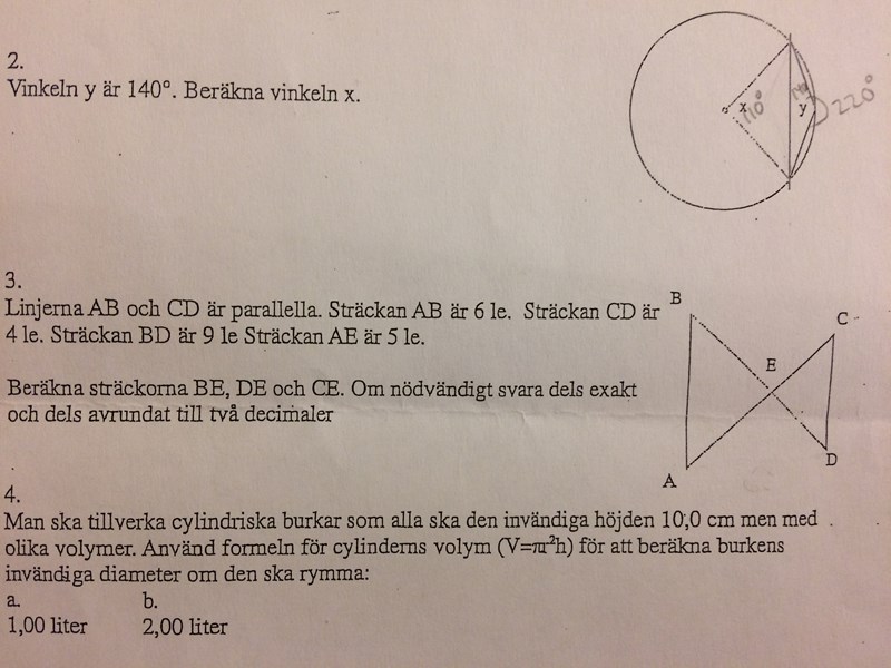 Bilden är lurig eftersom den (nästan) visar vissa symmetrier som inte finns (dvs DE <> CE). Men vinkeln vid A är samma som vinkeln vid C! Jag skulle börja med att måla ett bättre bild där vinkeln vid A och vinkeln vid B är tydligt olika (typ 60 grader och 25 grader).