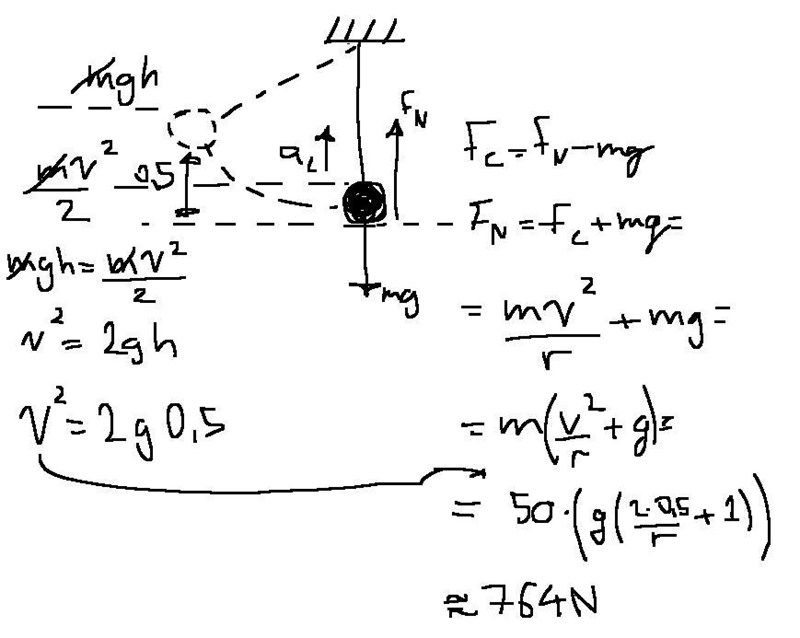 Hej, skulle behöva lite hjälp att räkna ut svängningstiden till denna uppgiften. Uppgiften lyder; Lille Roger (50kg) gungar i en gunga där repen är 1.8m och han åker upp 0.5 m vid varje gungning. a) Bestäm normalkraften från sitsen när han är i sitt understa läge(har löst den nedan). b) Bestäm svängningstiden (behöver hjälp med).