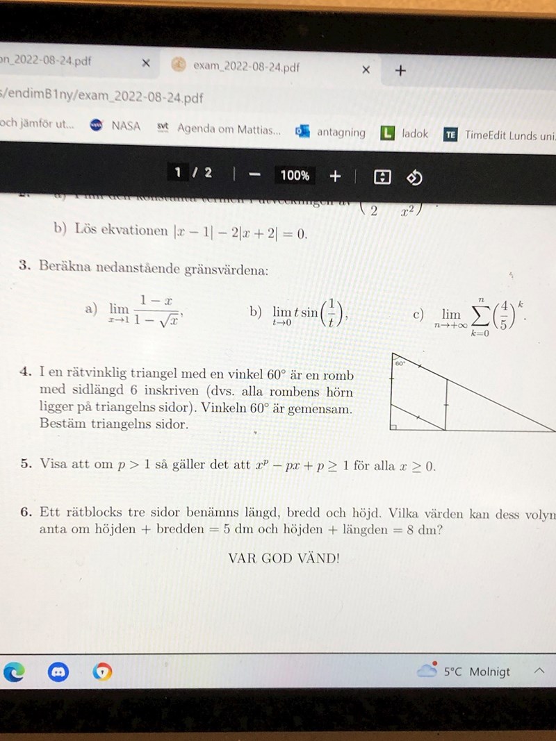 Hejsan, jag skulle behöva hjälp uppgiften nedan (uppgift 4). Jag får fel redan på första sidan och undrar om någon ser vad jag för fel. Tack på förhand!