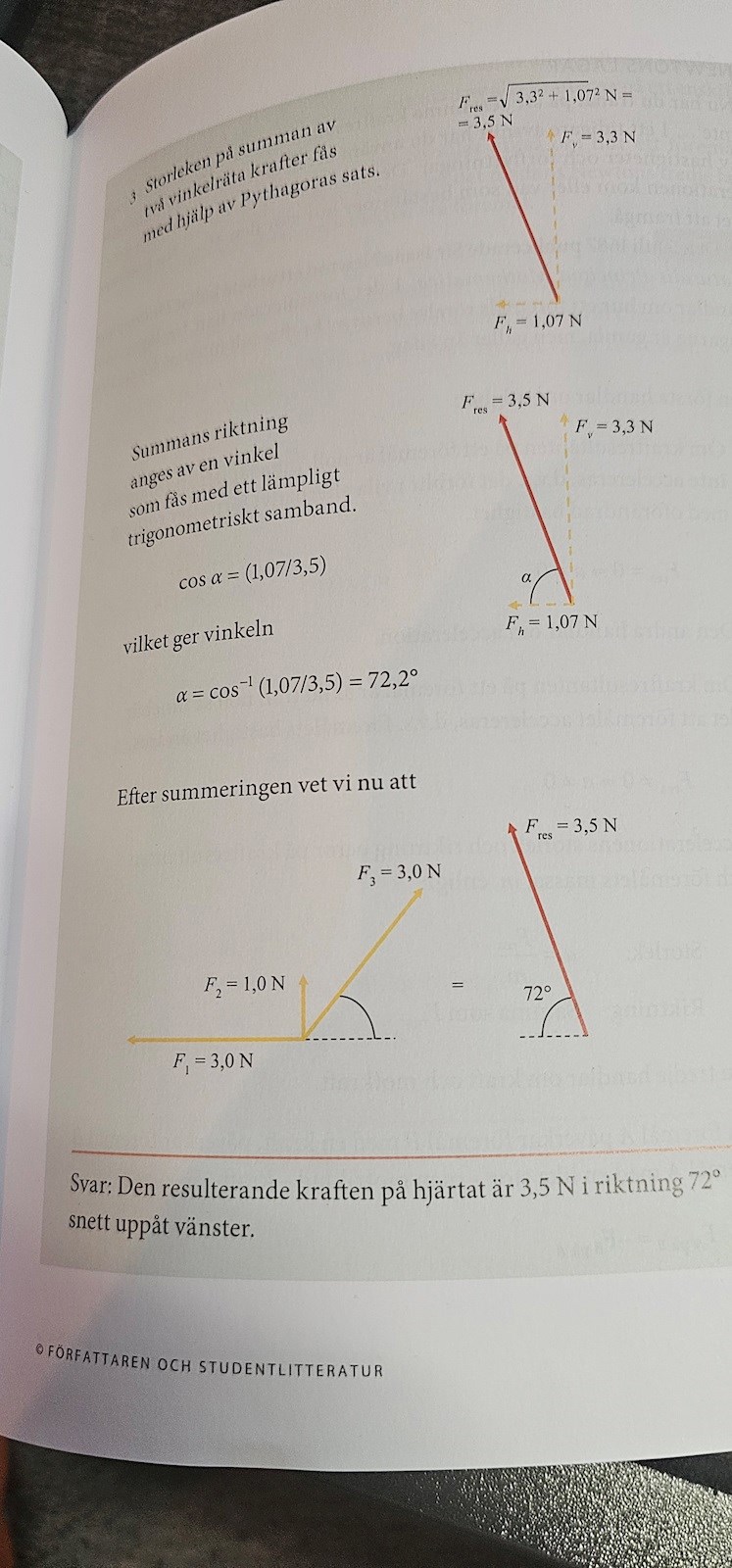 Eller om 3.3 N och 1.07 N är exakta värden så blir resultanten