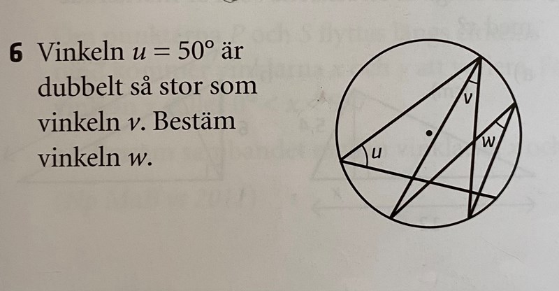 Yngve skrev:Du vet att randvinkeln v är 25°. Vinkeln w är också en randvinkel som öppnar sig mot samma cirkelsegment.