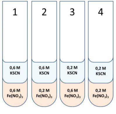 Eftersom koncentrationerna bara anges med 1 värdesiffra duger det med 0,4 g respektive 1 g i de båda provrören.