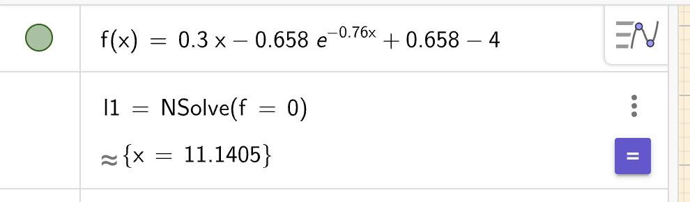 x = (4 -0,658 + 0,658*e-0,76x)/0,3