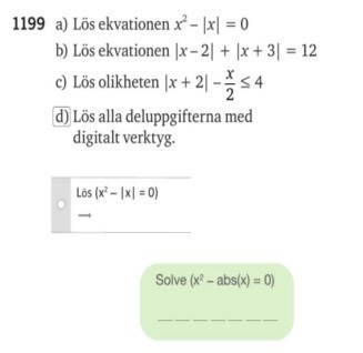 Jag har löst a, b, och c, men behöver hjälp med d. Jag har en TI-84 plus, hur gör man? Kollade lite på nätet och kom fram till att man ska använda "numeric solver", men allt de säger är "tryck här o där och poof! löst" men jag fattar inte vad miniräknaren visar på skärmen och hur man får fram flera rötter. Sen behöver jag också hjälp med att skriva ner olikheten på miniräknaren, för det visste jag inte ens att man kunde göra.