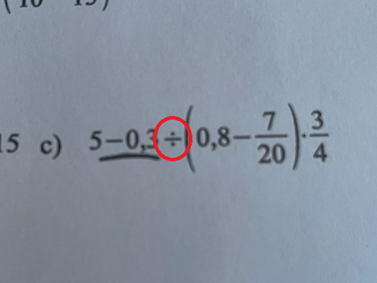 När parentesen är uträknad, är det korrekta att multiplicera med 3/4? (Jag får nämligen ett annat resultat om jag dividerar 0,3 med resultatet från parentesen.)