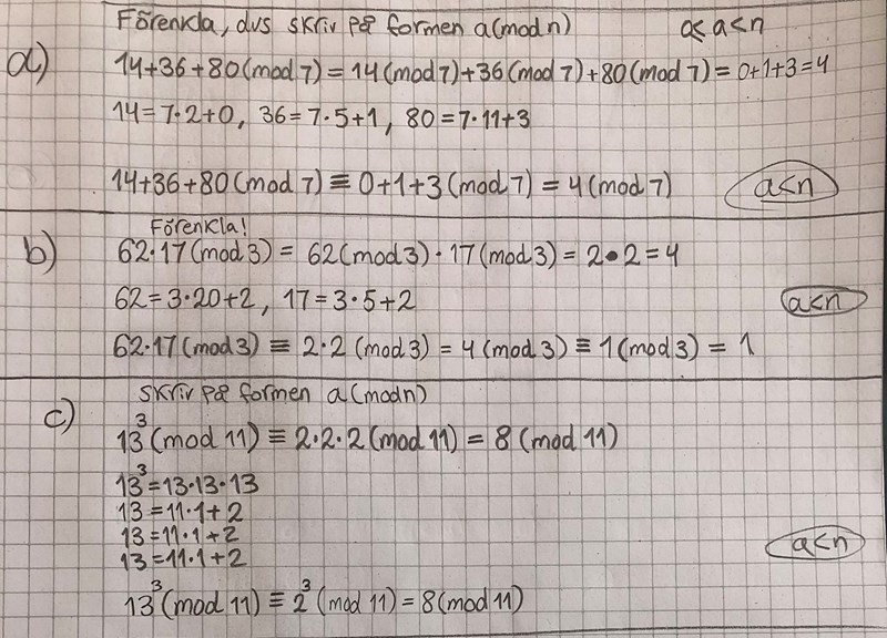 14+36+80(mod7) är lika med 14(mod7)+36(mod7)+80(mod7)?