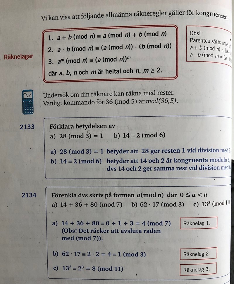 Undrar om räkneregel 1 betyder att 14+36+80(mod7) kan skrivas om till