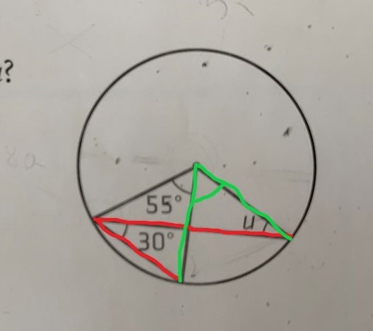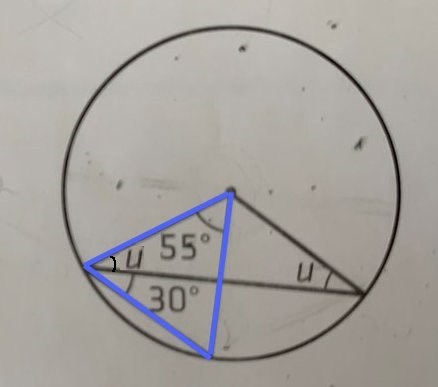 Fick att den stora Randvinkel var 250 grader men ska jag använda randvinkelsatsen för att få u?