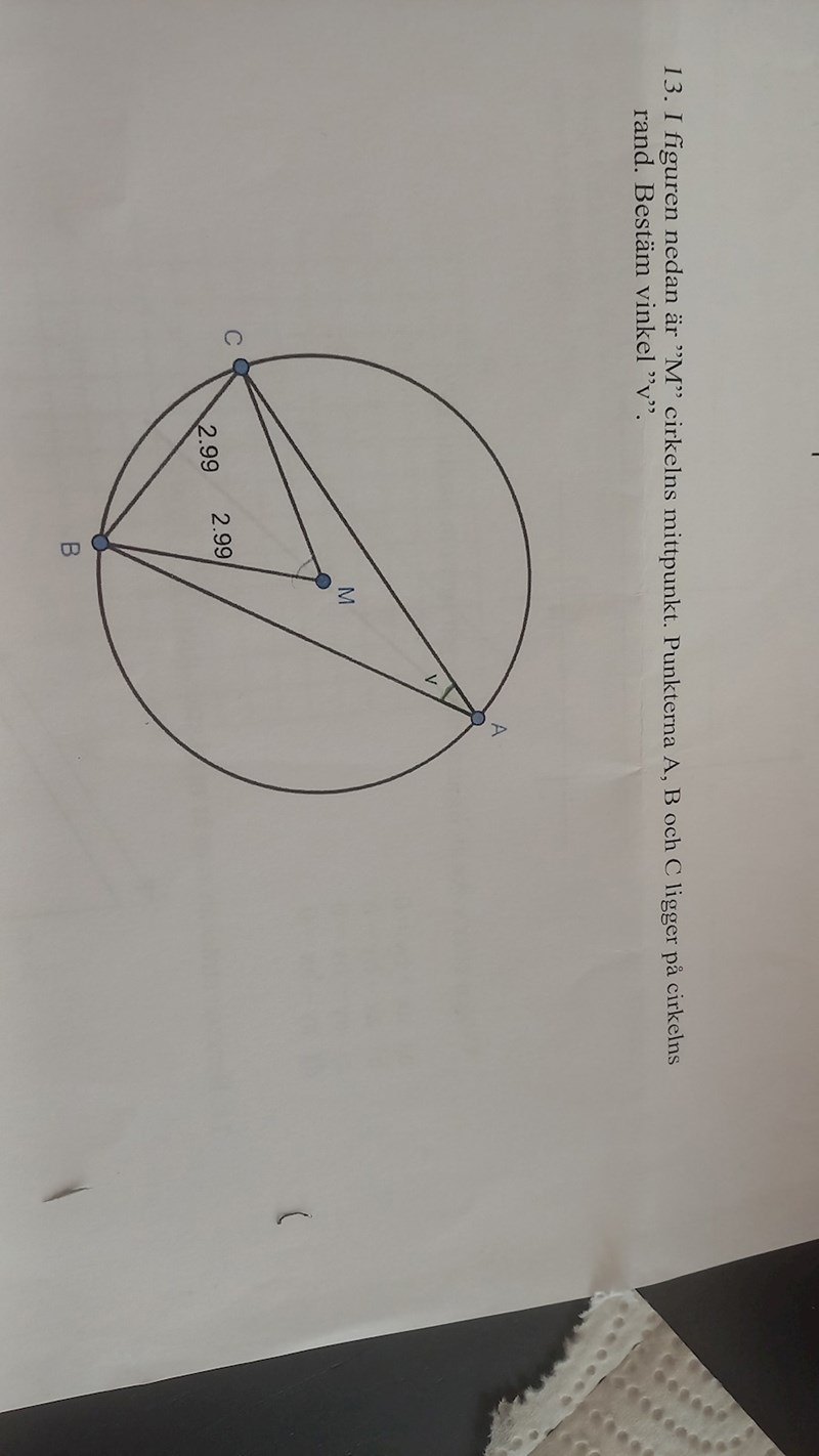 Jag förstår hur man räknar ut randvikelsatsen men vet inte hur jag ska räkna ut när varken m eller a har någon grad redan. Och det står bara vad det är mellan c och b...