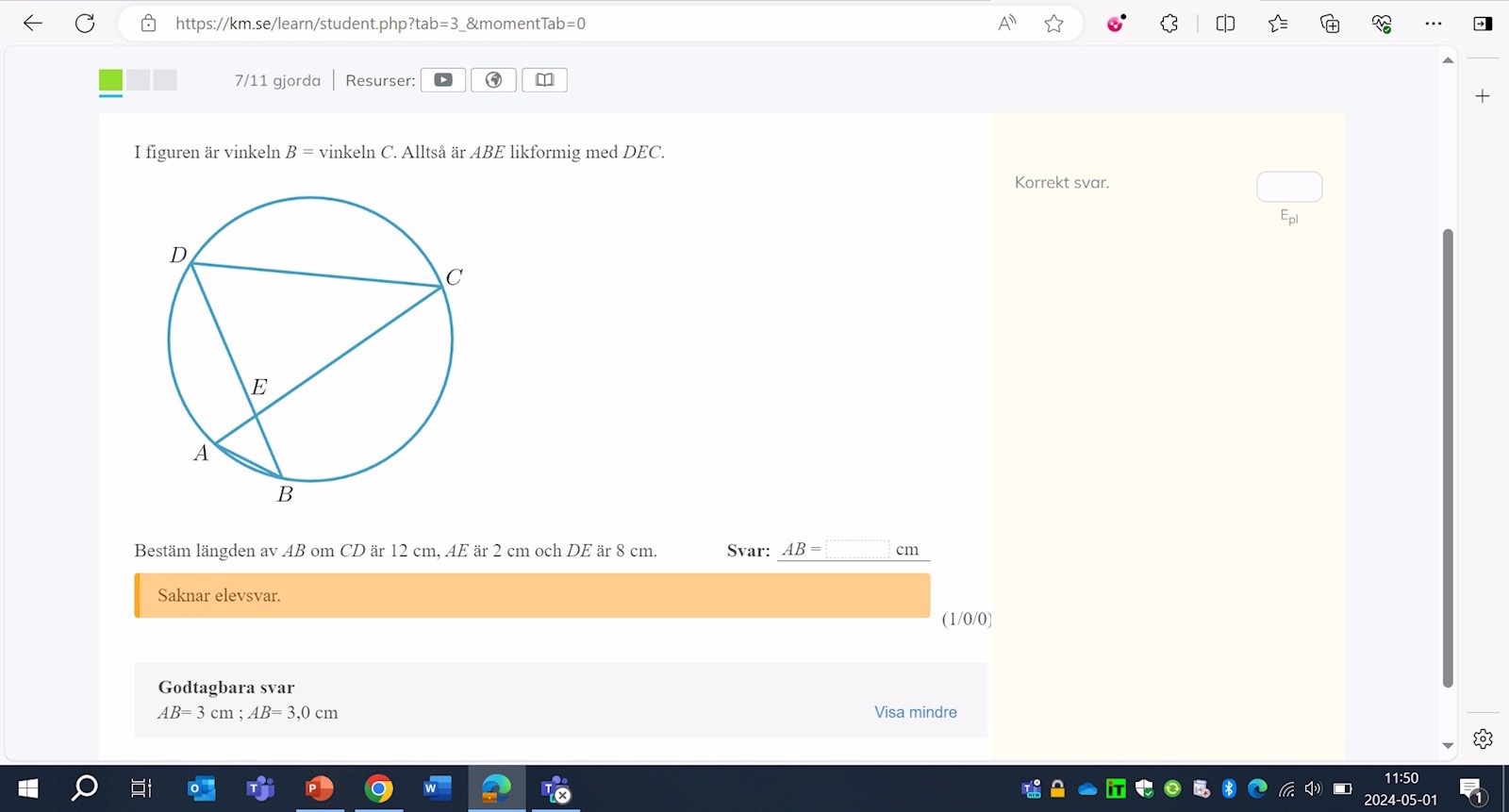 Nej. Markera i figuren vilka lika vinklar du känner till, så blir det lättare att se sambanden.