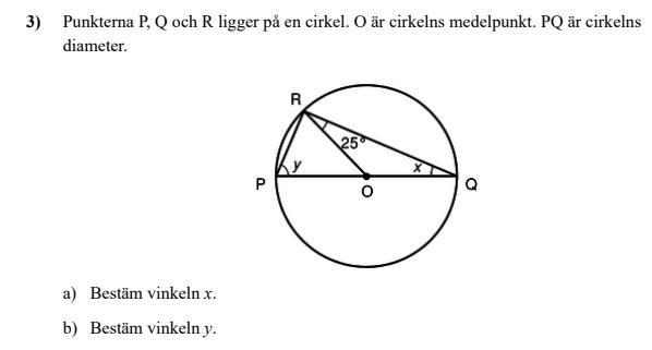 Börja med att ta fram x. Ser du att ORQ är en likbent triangel?