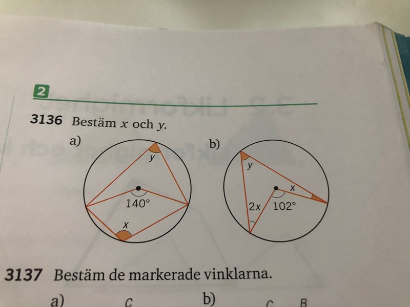 Smutstvätt skrev:Välkommen till Pluggakuten! Du har en fyrhörning med hörnen y, x, 2x, samt "innervinkeln" i cirkelns mitt. Hur stor är denna innervinkel?
