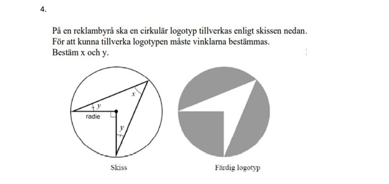 Jag har fått fram att x=45grader då medelpunktsvinkeln är 90 grader.