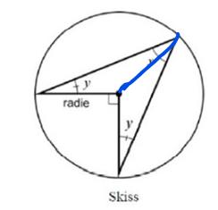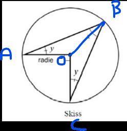 I figuren så är linjen OB detsamma som radien, alltså OB=OC=OA