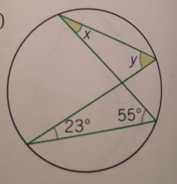 - Från C utgår endast de två kordorna CB och CD. Här finns alltså endast en randvinkel, nämligen vBCD (dvs y).