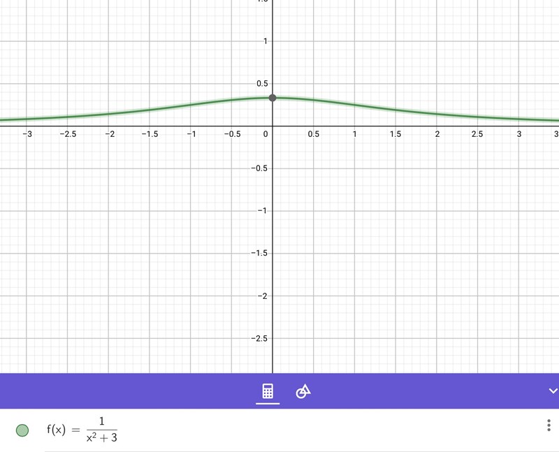 f(x)=1/[3+x^2] Df är {R} och Rang eller värdemängd är jag kan inte utan ritar med GeoGebra och det är ]0,1/3] eller y={y| (0,1/3]}men hur man räknar utan att rita?