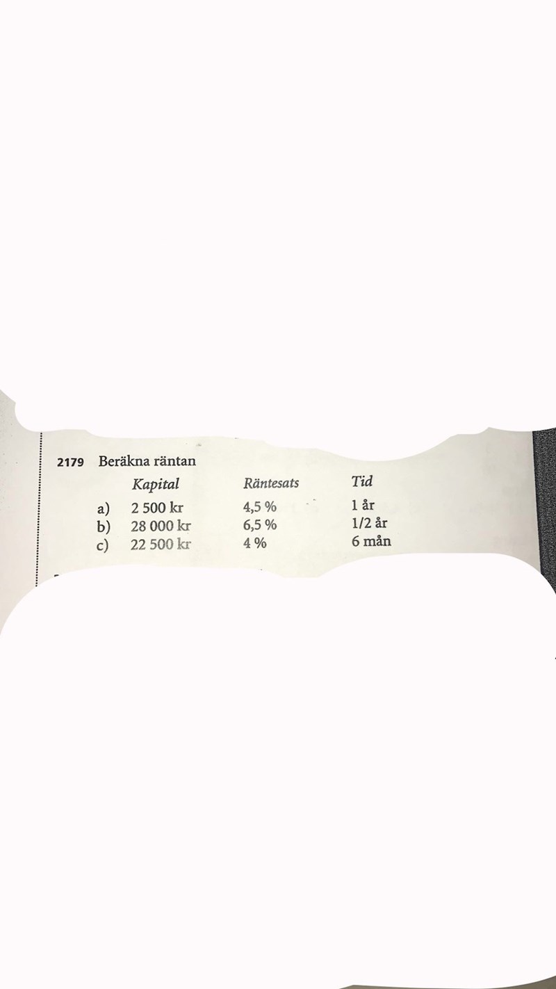 Ellen18 skrev:Hej jag skulle behöva ha lite hjälp med den här uppgiften hur man ska räkna med åren? Jag ve tjej att ränta är något man ska betala därför sjunker kapitalet alltså summa