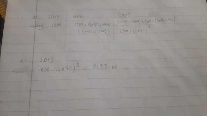 talföljd: 1500 + 1500 * 1,045^n n = 5