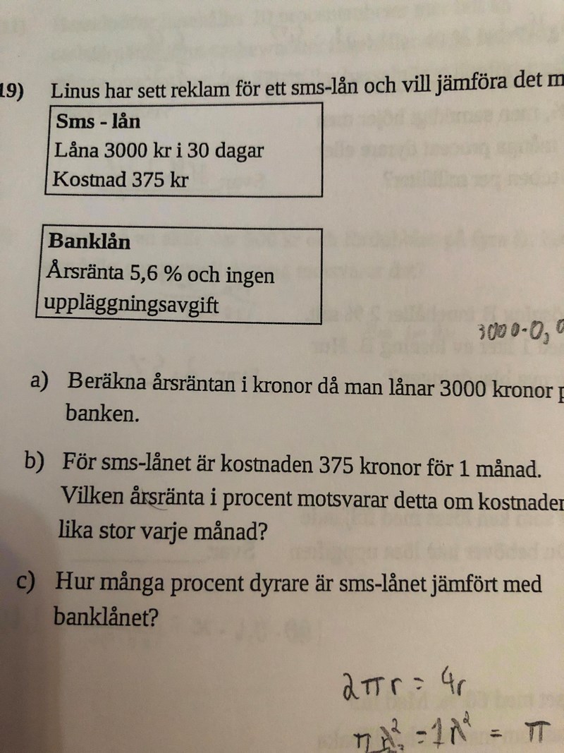 Räntan för sms lånet är 375*12=4500kr4500kr+3000kr=7500kr