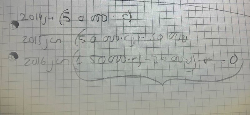Är det så här du menar: ((50000·r)-30000)·r = 0 ?