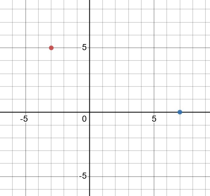 Här är en röd punkt och en blå punkt i ett koordinatsystem. Kan bestämma ekvationen för en rät linje som går genom de två punkterna?