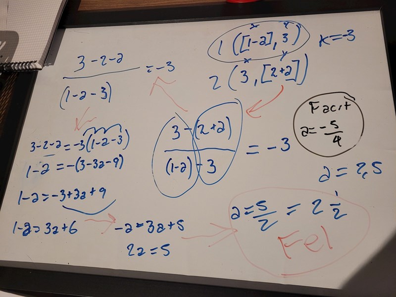 Vilket värde ska a ha för att en rät linje med riktningskoefficienten -3 ska gå igenom punkterna