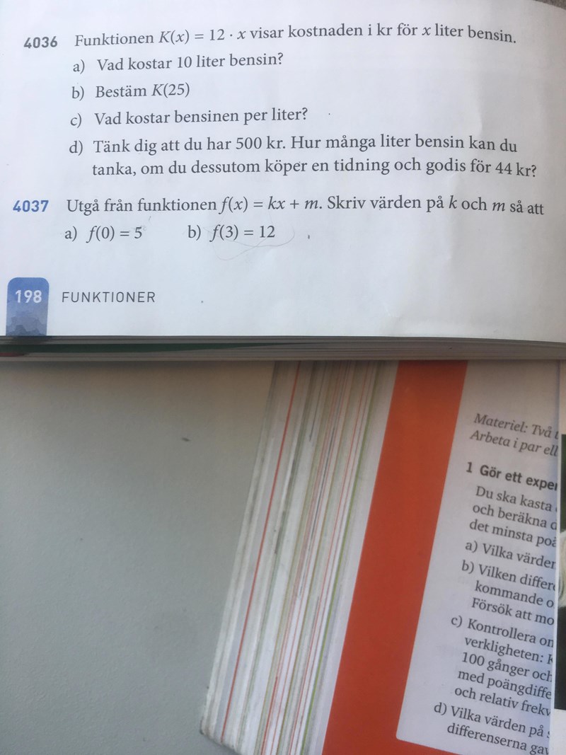 Uppgift 4037 är ”utgå från f(x) = kx+m