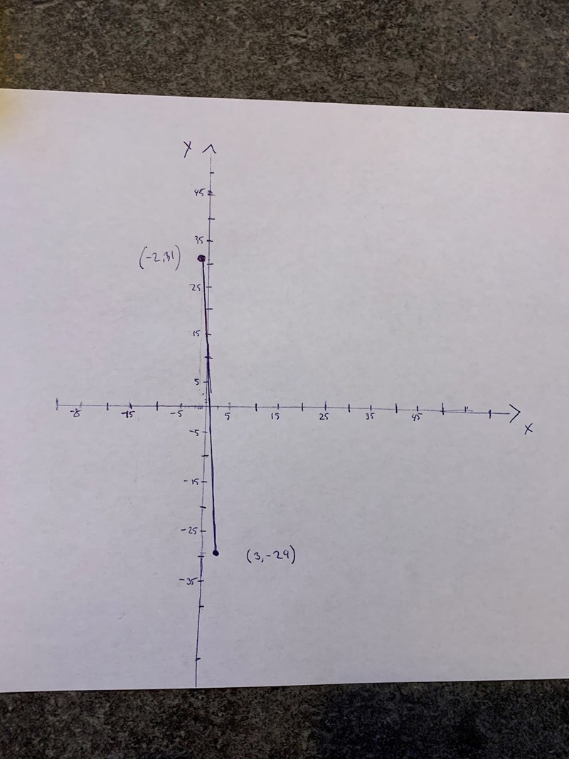 Uppgift: för en linjär funktion f(x) gäller att f(-2)=31 och f(3)=-29 ange f(x)