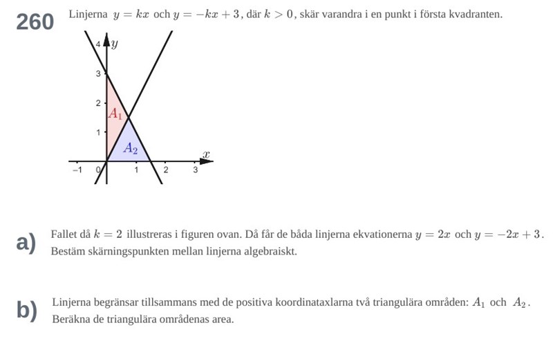 a) Skärningspunkten mellan linjerna är 0,75 och 1,5.