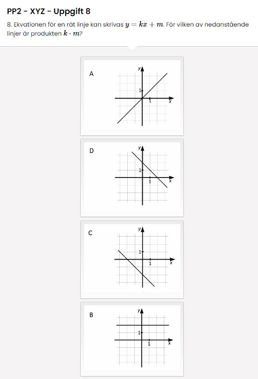 Sen så visas ett antal räta linjer och rätt svar är den linje som har k = -1 och m = 2